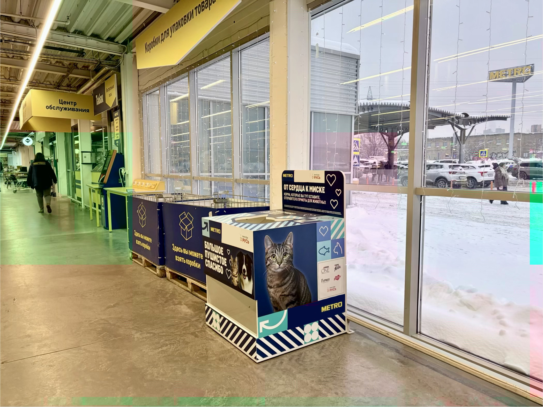 Компания METRO и Благотворительный Фонд «Банк еды «Русь» запустили социальный проект помощи бездомным животным: в торговых центрах сети установили специальные боксы для сбора корма.