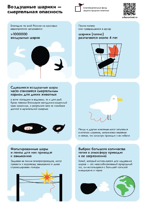 Фонд защиты городских животных запустил просветительскую кампанию, призванную предупредить школы, вузы, муниципальные учреждения и организаторов массовых мероприятий о вреде воздушных шаров для городской фауны и окружающей среды.